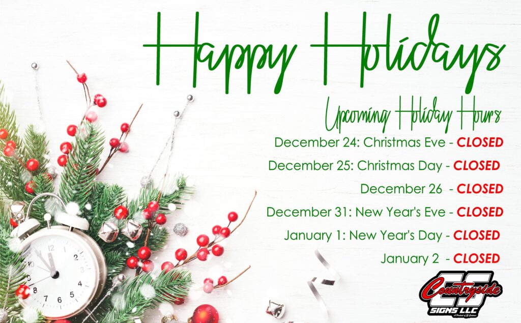 Countryside Signs prides itself in quality and great customer service. We offer Banners, Business Signs, Business Window Graphics, Formed Letters, Indoor Signage, Law Enforcement, Logo Design, Monument/Cabinet Signs, Recreational Vehicle signage and much more!